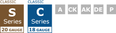 Our Classic Frame is available in two material thicknesses, S-Series (20 Gauge) and C-Series (18 Gauge) prefinished steel.