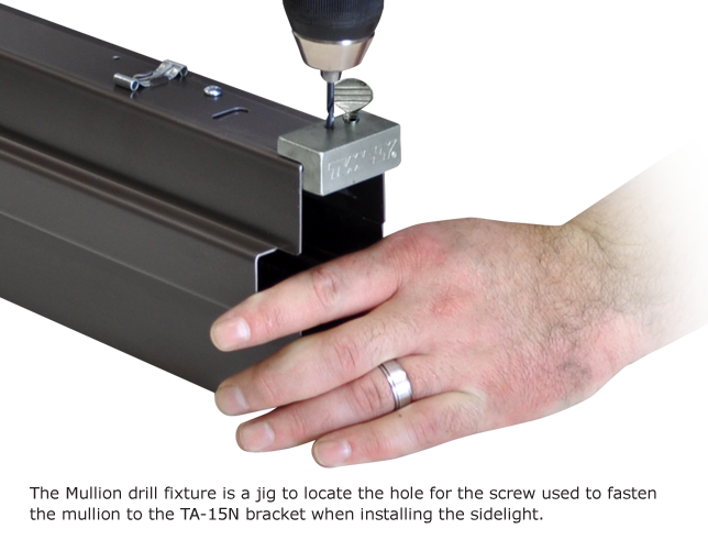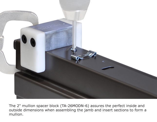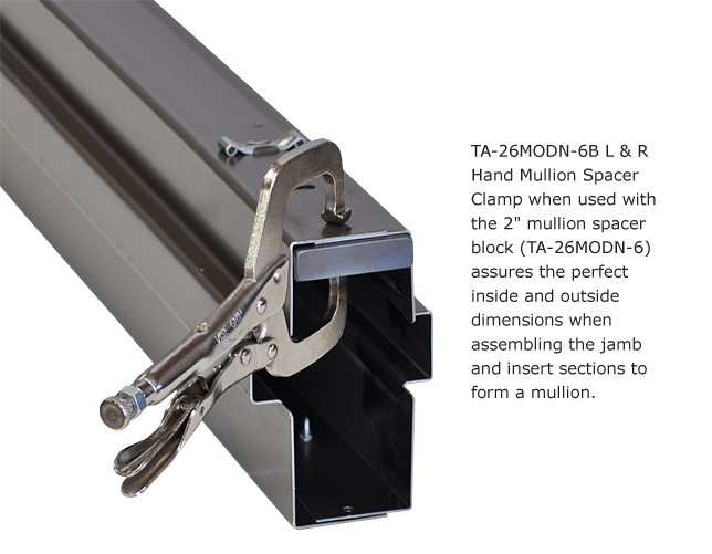 TA-26MODN-6B L & R Hand Mullion Spacer Clamp (with 2” Mullion Spacer Block) TA-26O Mullion Drill Fixture (with Drill Bits) TA-41 Glass Stop Dimpler Tool