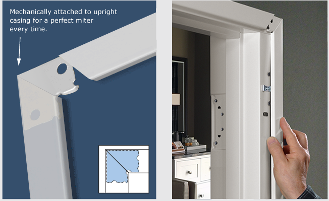 Our patented sustained tension snap-lock clips permit use of our various prefinished casings. The clips hold these casings secure and flush against the wall, eliminating gaps caused by uneven surfaces, as well as creating tight miters. On the TA-8 casing, the Timely MiterGard™ offers additional open-miter protection.