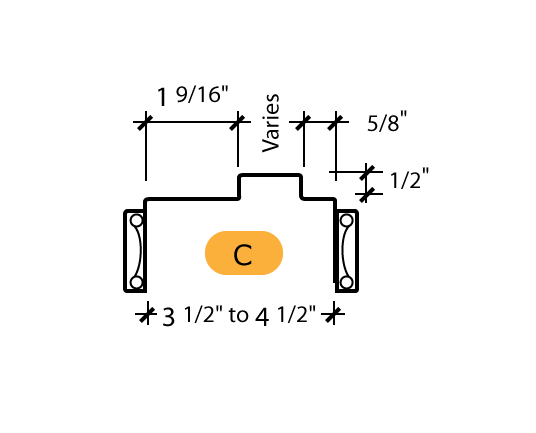 C-Series (18 gauge): 3 1/2″, 3 3/4″, 4″, 4 5/8″, 4 7/8″, 5″, 5 3/8″, 6 5/8″, 6 7/8″ and 7 1/4″